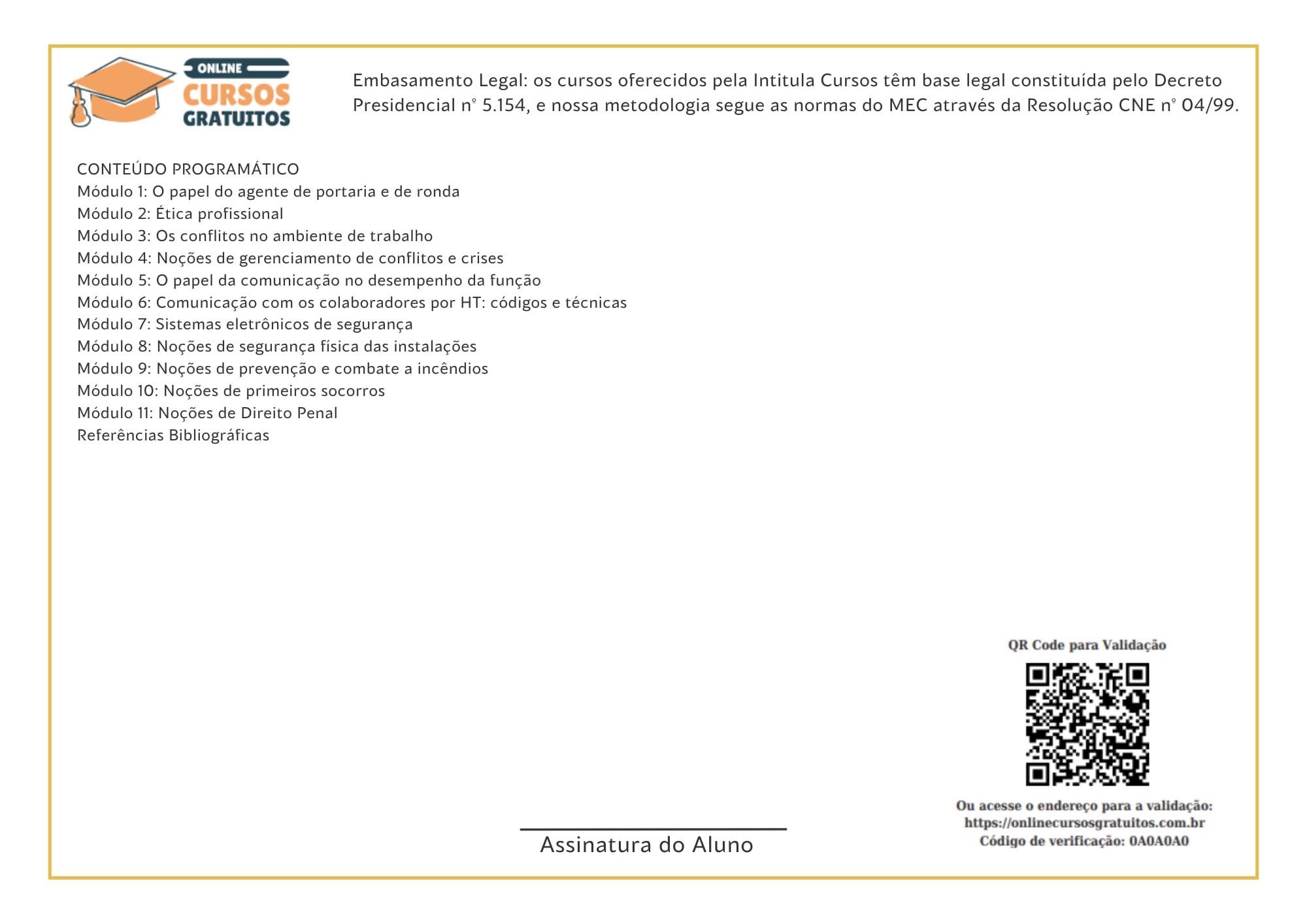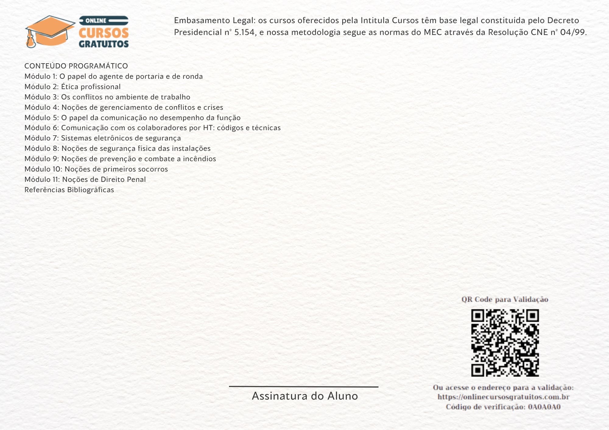 Nosso certificado também possui um QR Code e um código de verificação no verso do certificado, que poderá ser apresentado à empresa contratante ou a banca para validação do certificado.